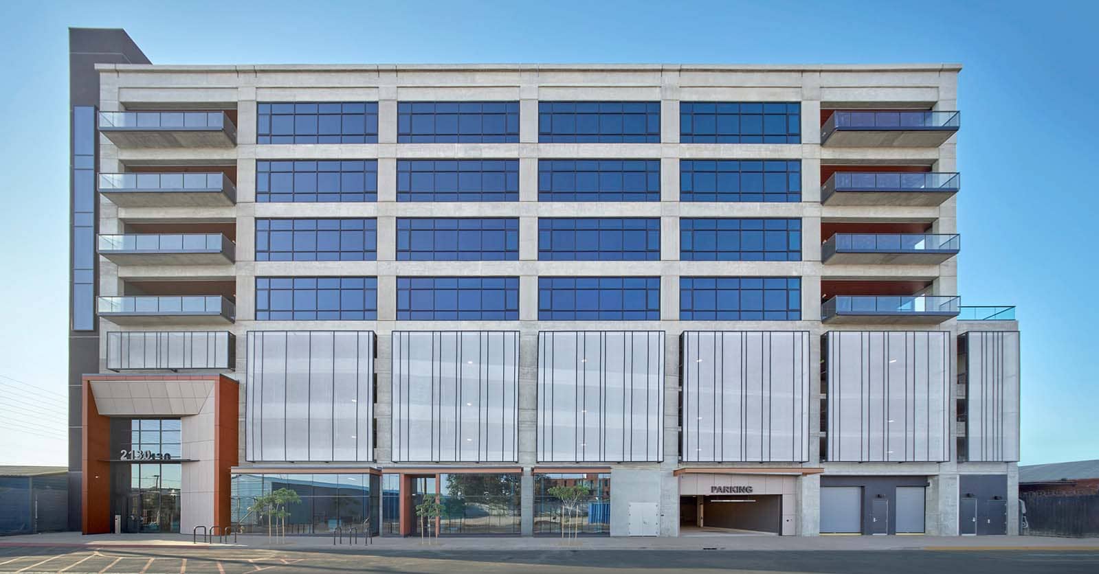 The nine-story project totals more than 113,000 square feet and is situated along the Los Angeles River. It includes 109,100 square feet of office space, 3,400 square feet of ground-floor retail, four levels of parking for 275 vehicles, outdoor spaces including private terraces, and a 3,000 square foot rooftop deck/lounge with stunning views of the city and mountains. The building incorporates 27,000-square-foot open floorplates, high ceilings, energy efficient building systems and HVAC. The ground-up project included the reuse of an existing site, high-rise construction within small site constraints, and a focus on maximum coverage.