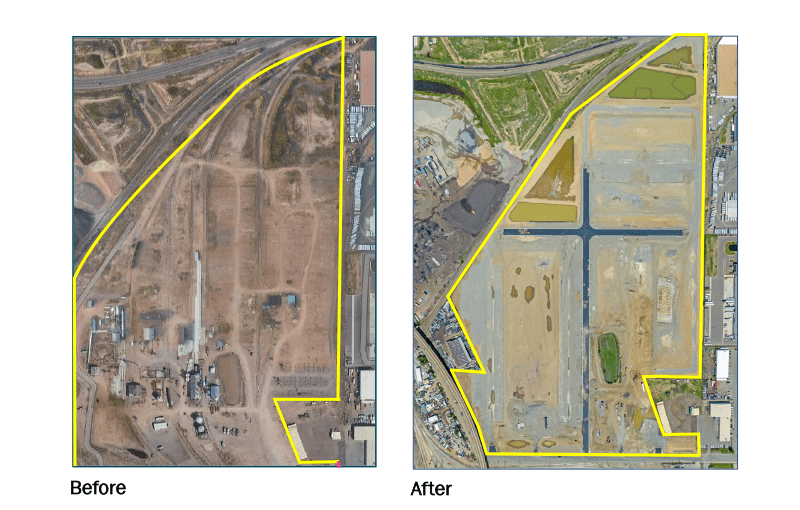 Soil remediation: Our team carefully executed a thorough soil remediation process by following the soil removal and preparation requirements set forward by the remediation team to confirm that the site met safety standards, as required for future development.
