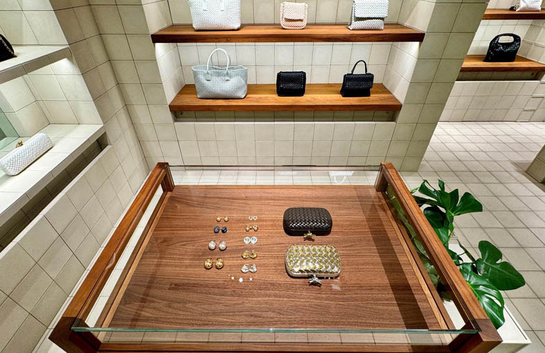 Architect of record services for a tenant improvement of a shop-in-shop retail space for Bottega Veneta at the Canal Place Shopping Center within the Saks Fifth Avenue. The retail space features floor to ceiling imported Italian tile and the concept is based on a square grid, creating a seamless single unit of perimeter and floor display. The luxury designer brand offers customers luxury handbags and accessories.