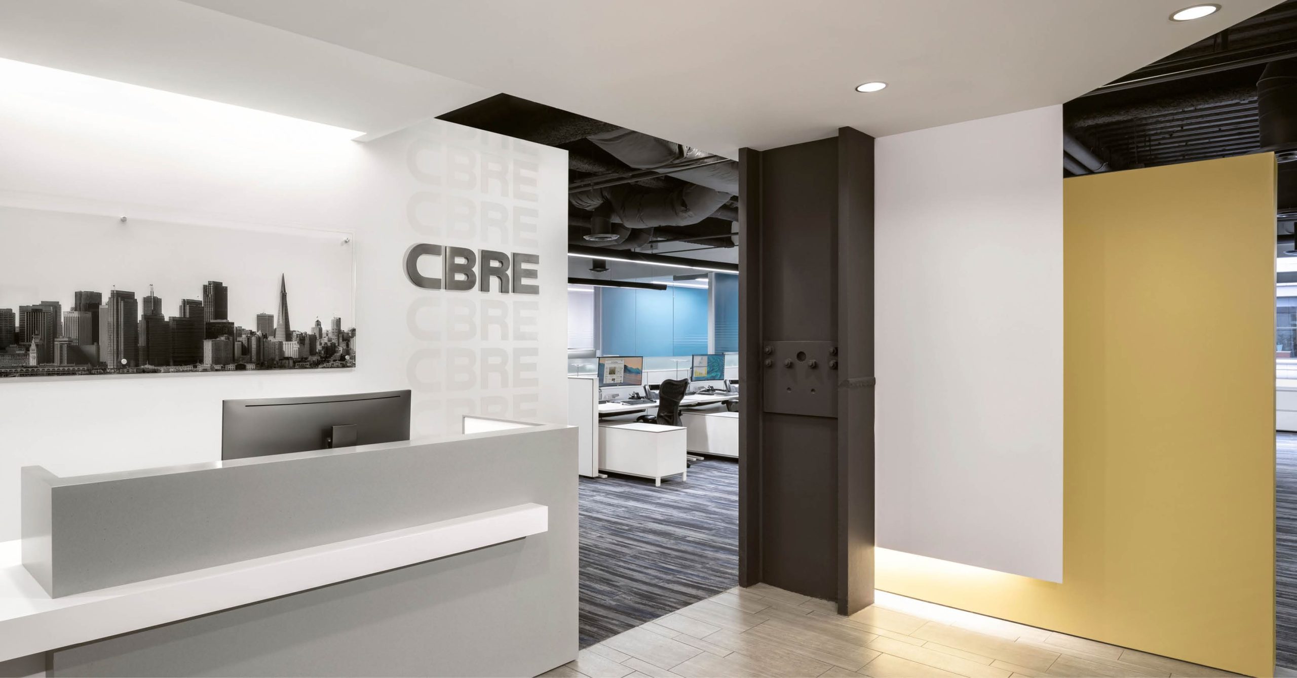 Interior architecture and design, branding and furniture selection services for 14,000 SF of office space for CBRE’s asset management division. The space features a modern, open office design concept with a variety workspace options including open and enclosed meeting areas and two open café/break out areas to foster employee engagement. Branded graphics are integral to the design, with CBRE’s core messaging and new workplace initiative guidelines incorporated throughout the space, including a custom acrylic display of the San Francisco skyline, privacy film for offices and conference rooms, a large map of San Francisco and a graphic for their break room titled “rise”, integrating imagery of the Golden Gate Bridge. The branding design drew inspiration from San Francisco and highlights CBRE’s focus on customer service and local reach.
