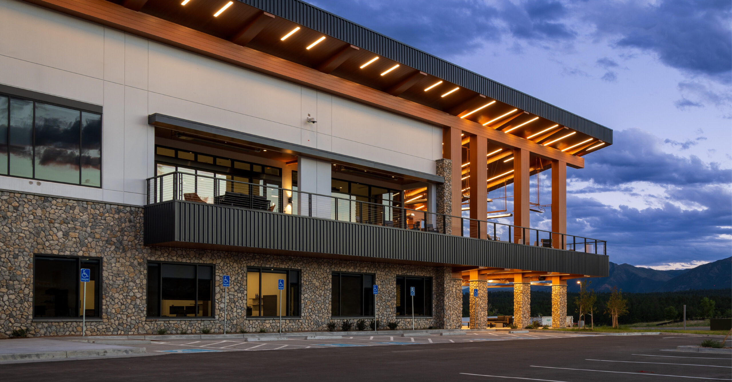 Employee experience is also crucial in the office layout, with various amenities including an outdoor patio, gym and collaboration spaces. The office’s four bars are the focal points for interweaving public and private spaces. Selected materials celebrate Eagle Rock’s new location near the Rocky Mountains.