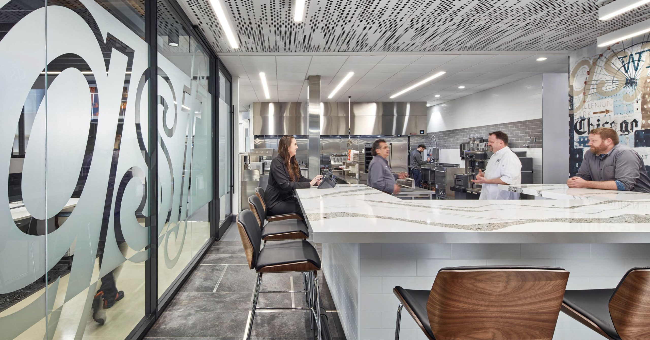 The Customer Experience Test Kitchen and Innovation Center serves as a place to gather, watch and experience Golden State Foods showcasing its food and liquid products. Inspired by the energy of its location in the West Loop neighborhood, the “The Chicago Kitchen Table” concept for the project comes to life. This space, like the kitchen table in a home, serves as the heart and soul that connects Golden State Foods’ products and their restaurant partners. This project achieved its goal of fusing the neighborhood culture with Golden State Foods’ global, gold standard image.