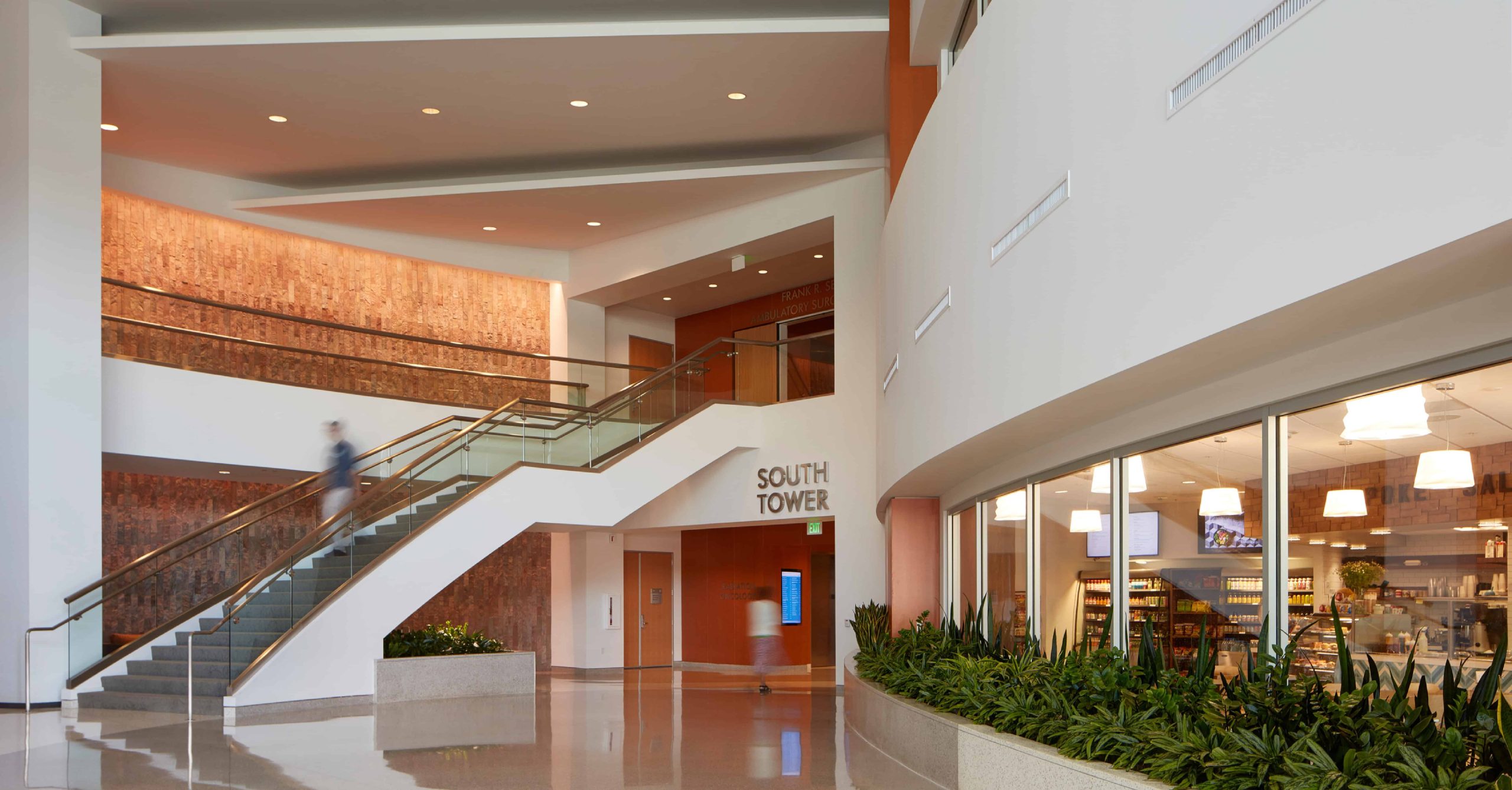 Architectural, interior, and branding services for the 193,500 SF, seven-story, steel framed medical office building, including exterior building and monument signage. The new building houses an ambulatory surgery center with 8 operating rooms, imaging center, radiation oncology center with 2 linear accelerators, pharmacy, cafĂ© and physician’s offices. The facility is be connected to an existing medical office building by a two-story glass lobby that includes warm and inviting elements more traditionally found in a fine hotel than a medical facility. An outdoor roof garden over the eastern lower portion of the building serves as a waiting/lunch area. Situated in a high-profile location on Wilshire Boulevard, the entire building is composed of curtain-wall glazing and a pre-cast concrete base representing a clean, modern theme.