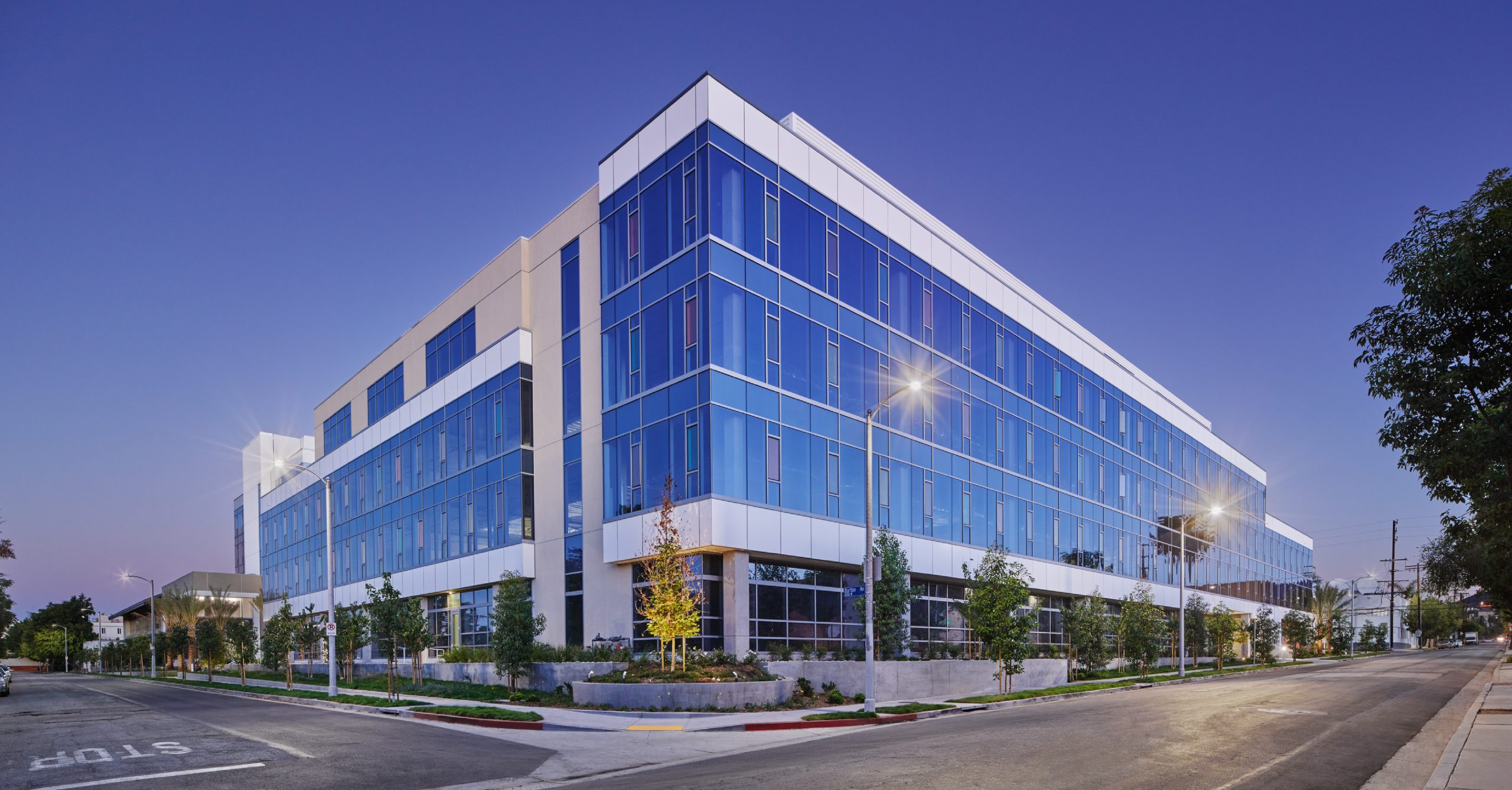 Architectural design services for 3 new office buildings (2, 4 and 5 stories) totaling 241,562 SF with an 8-level, 224,124 SF parking garage. The project creates an entertainment/media campus catering to creative office users for office, production, post-production, and editing. The campus offers large, flexible floor plates allowing for multiple office plan arrangements and sizing, including the opportunity for exterior circulation along the window line, as well as a multi-function courtyard space for events, screenings, and 3rd place work environment.