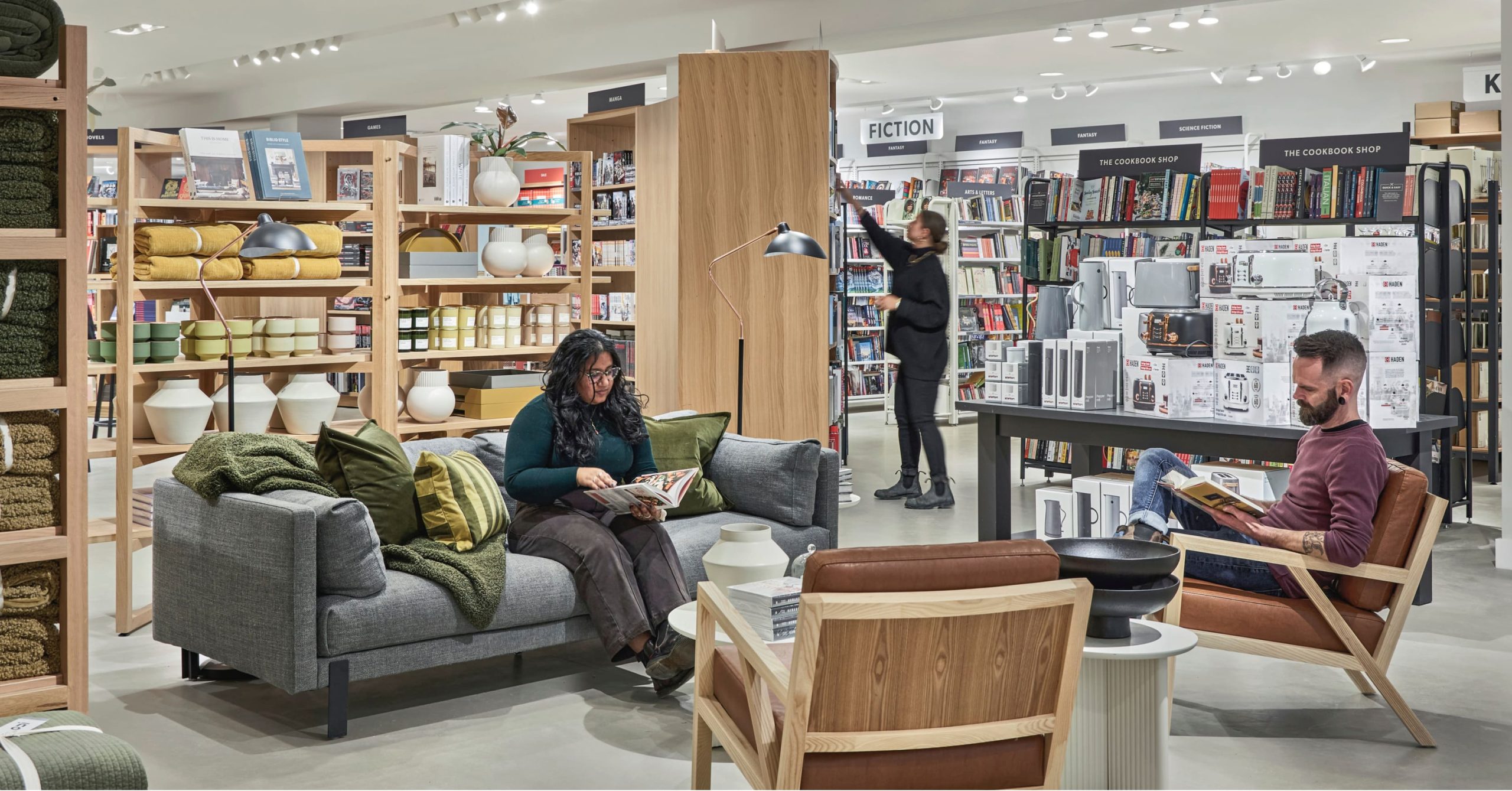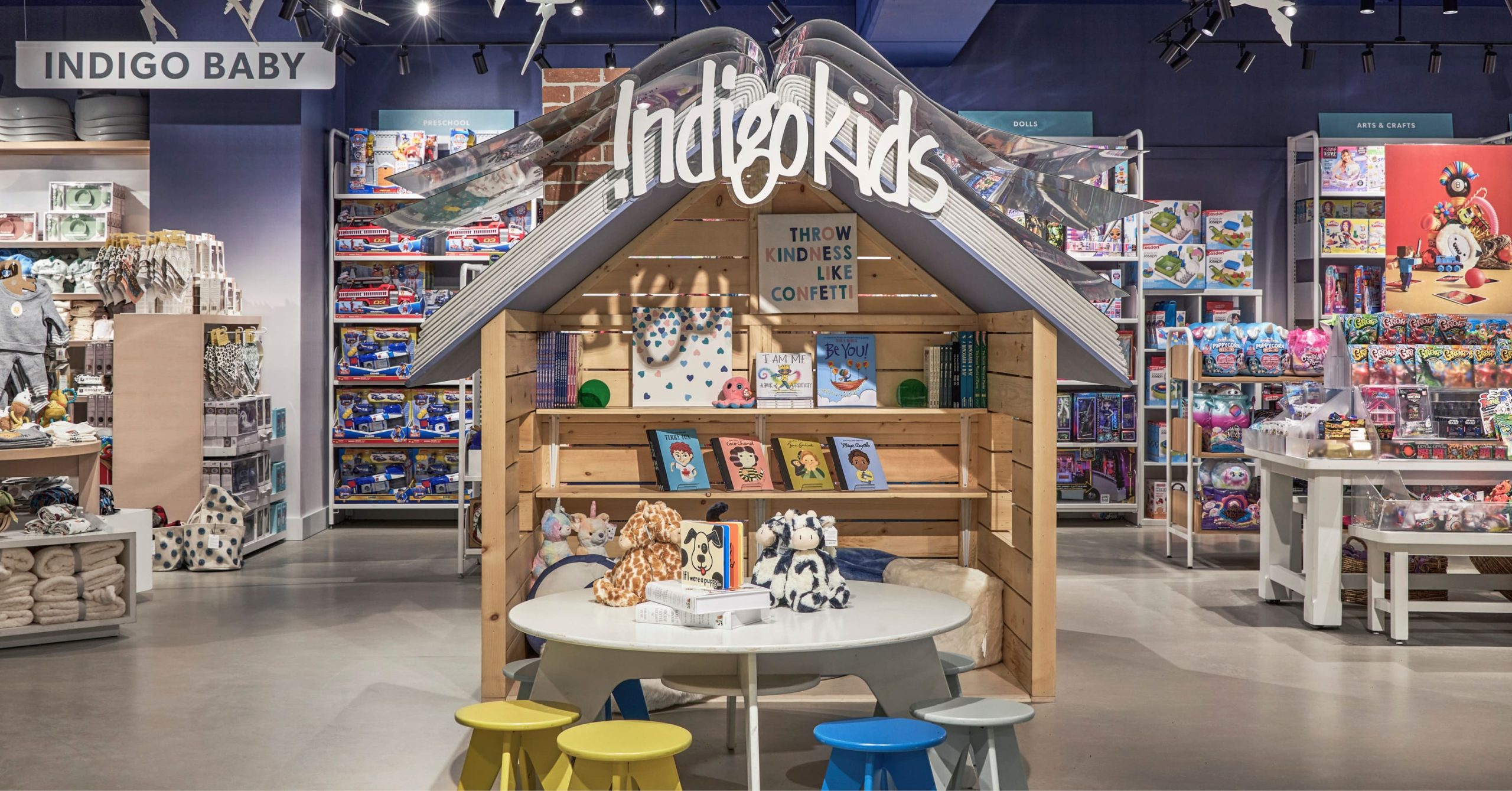Architectural and interior design services for a 18,000 SF new retail store location inside the Rideau Center mall in Ottawa. The 2-storey retail space contains an open floor plan to display merchandise with enclosed spaces for a staff room, manager’s offer, BOH stockroom and BOH storage. A clean neutral colour palette was used to allow merchandise and light fixtures to shine. A featured children’s area was designed in a bold dark blue to create delineation between spaces. A new facade with black MDF panelling was added to the entrance on both levels of the mall to welcome customers.
