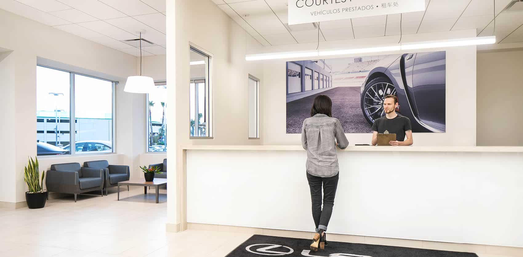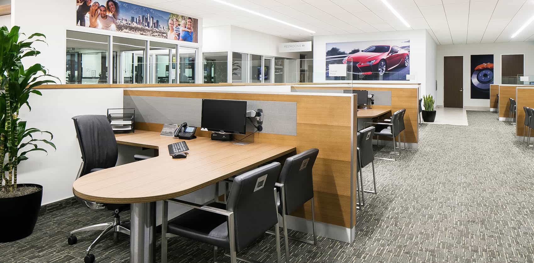 Interior architecture and design services for 9,790 SF customer service lounge and employee offices remodel. The project included guest seating, technology center, tv lounge, kid zone, cashier/concierge, sales team offices.