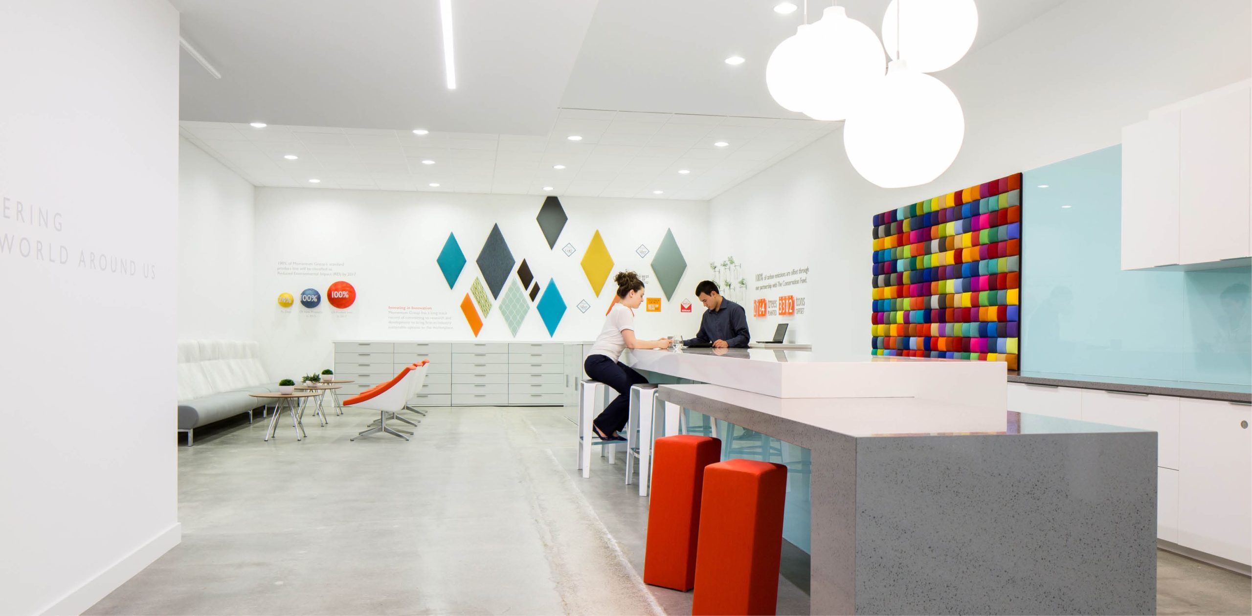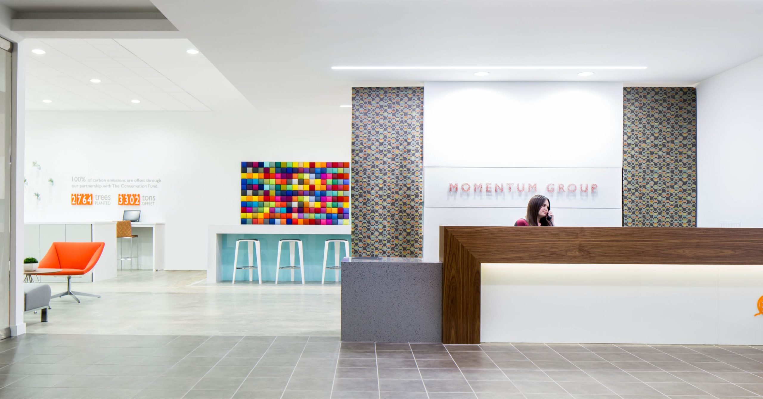 Interior architecture and design services for 30,000 SF remodel of an existing showroom and office to meet current design standards influenced by the need for a branded environment. Sustainability is an important part of Momentum’s culture and the design incorporated features that articulate this value. The crisp, clean and “architectural” design solution was appealing to the visitors of the space, who are primarily members of the architecture and design community. Ware Malcomb’s branding team played a key role in infusing branding into the space and helped with integration of the branding and the overall design concept.