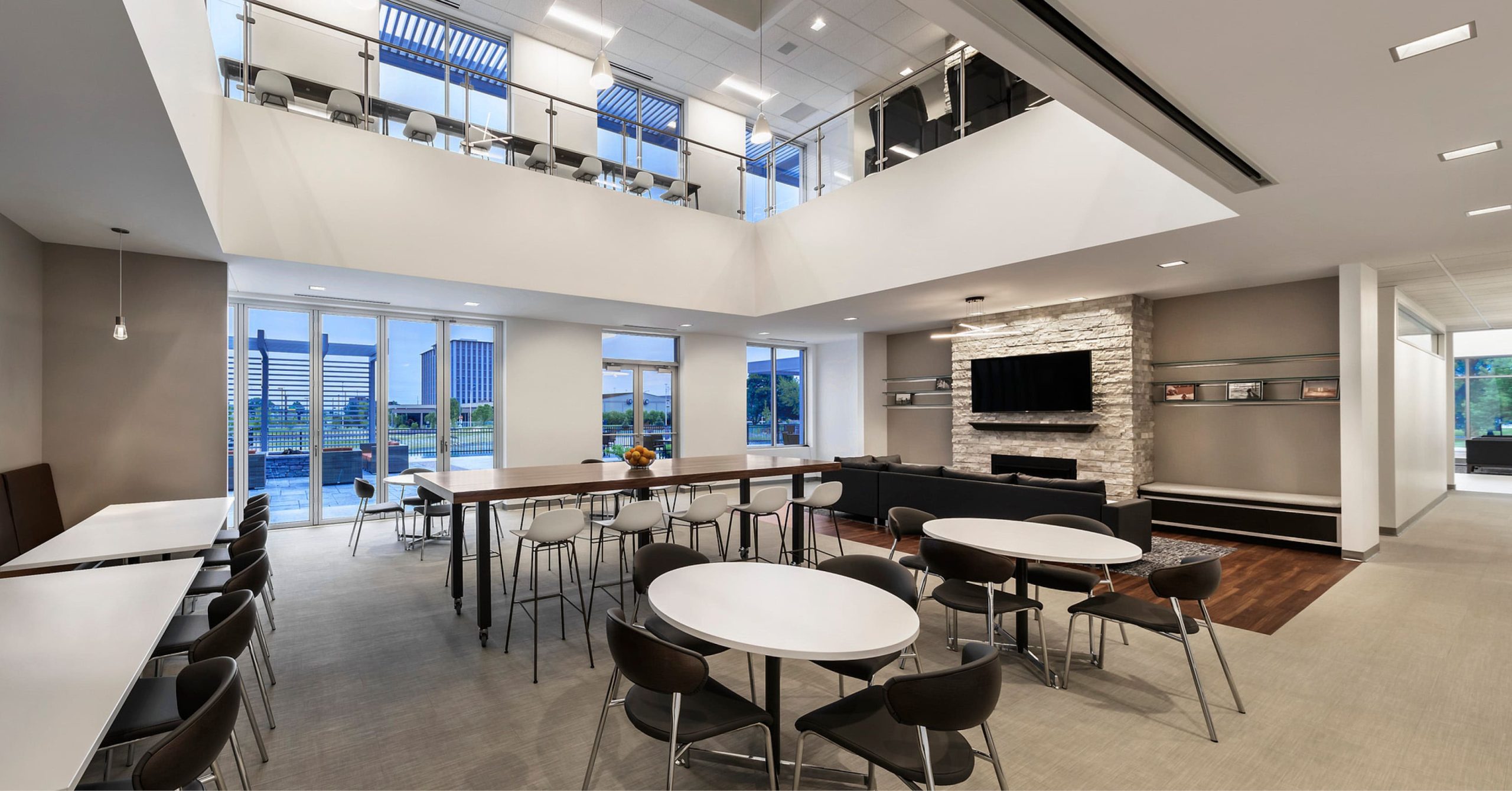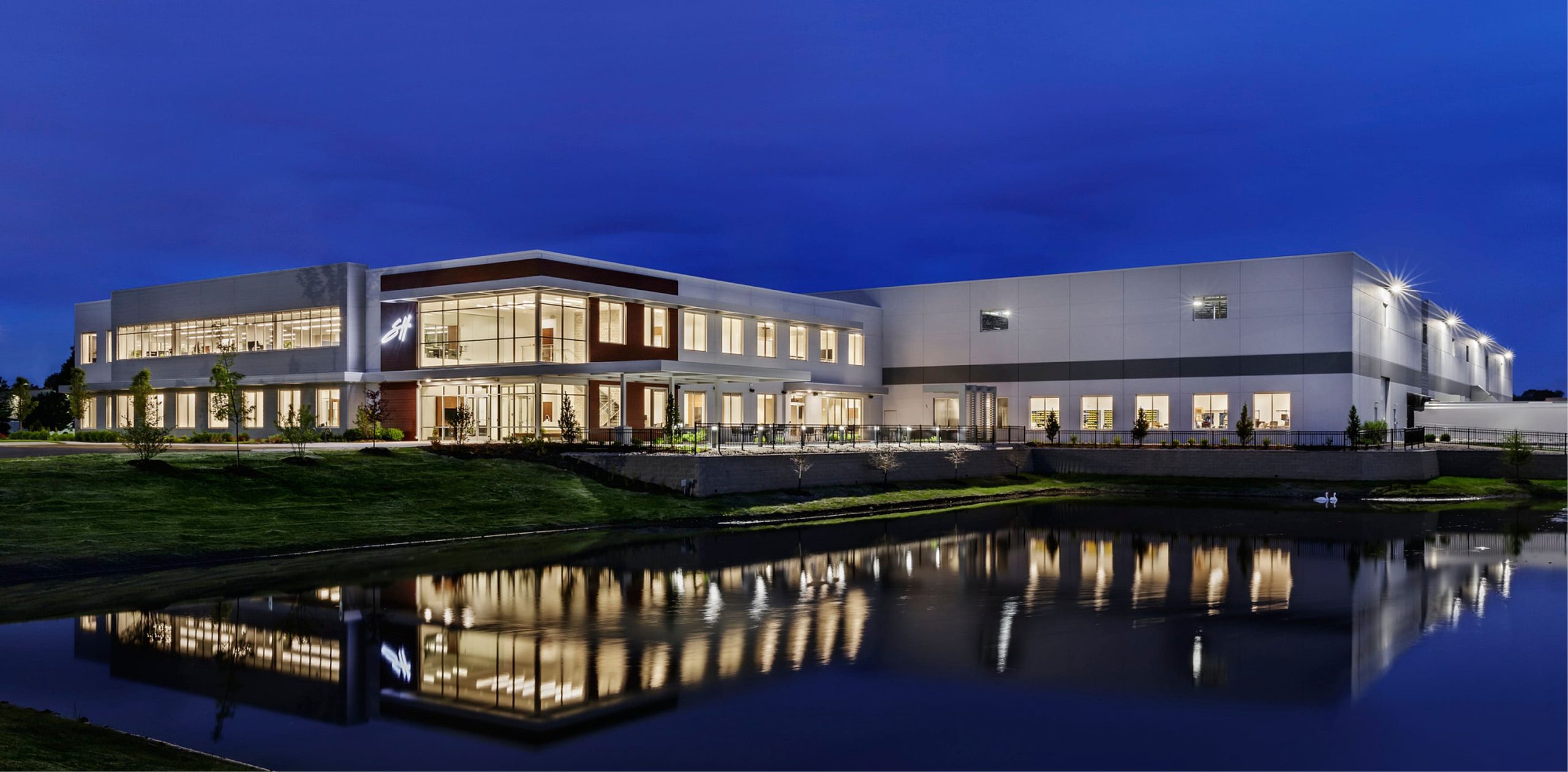 Architecture and interior design services for a 125,000 SF industrial build-to-suit. The project includes approximately 24,000 SF of office space including collaborative hubs, quiet “library” zones and a 2-story Town Hall-style cafe for the enjoyment of both the office and warehouse staff. The adjacent community patio/fire pit serves as an extension of the Town Hall, and an alternate work environment for all.
