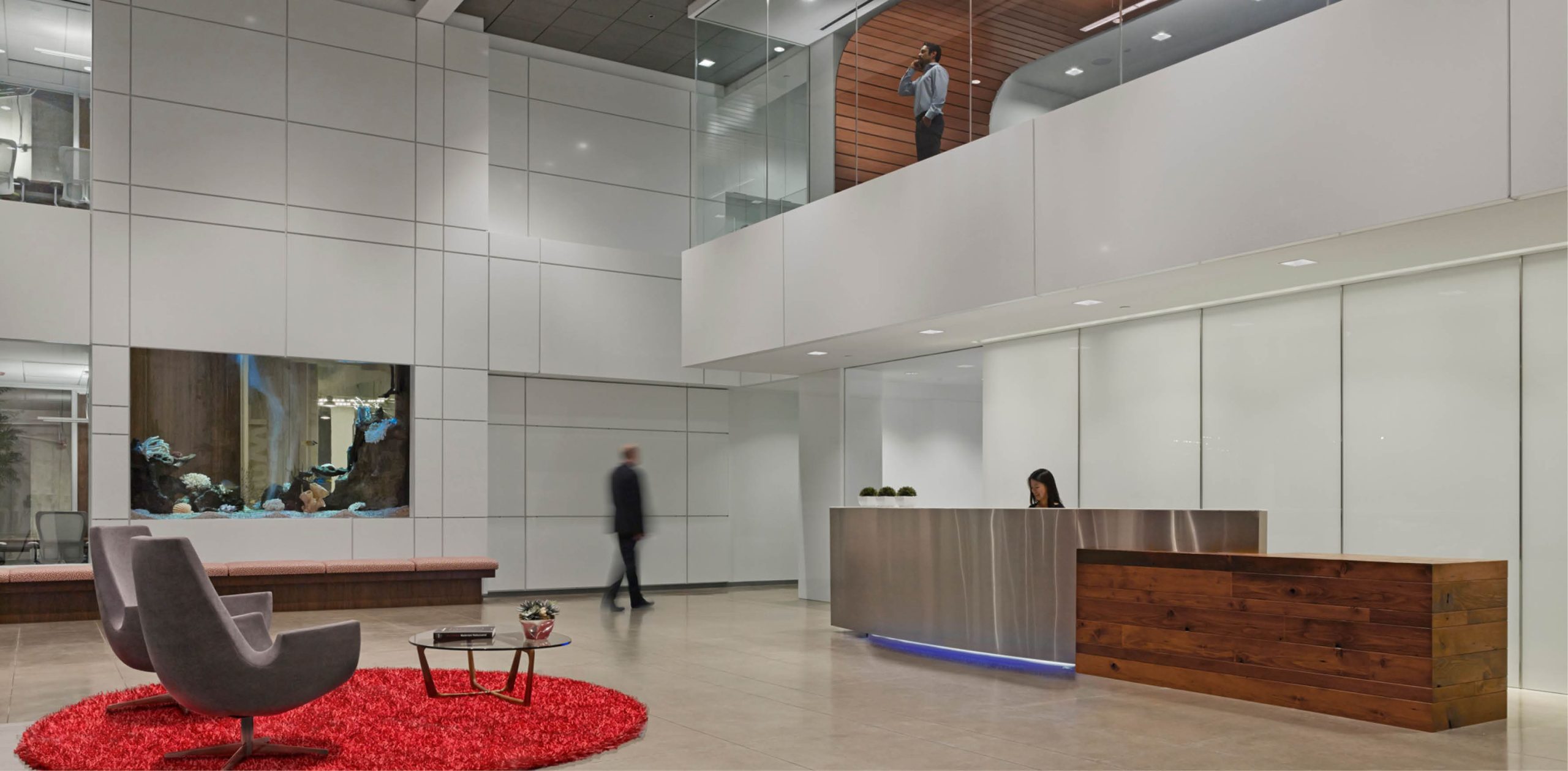 The two buildings are connected with a new two-story 13,000 SF high end lobby. The new 41,000 SF of office includes conference rooms, a cafeteria, lounge area and other employee amenities, as well as an 8,000 SF call center on the first floor. The project also includes a rooftop patio and a full exterior remodel.