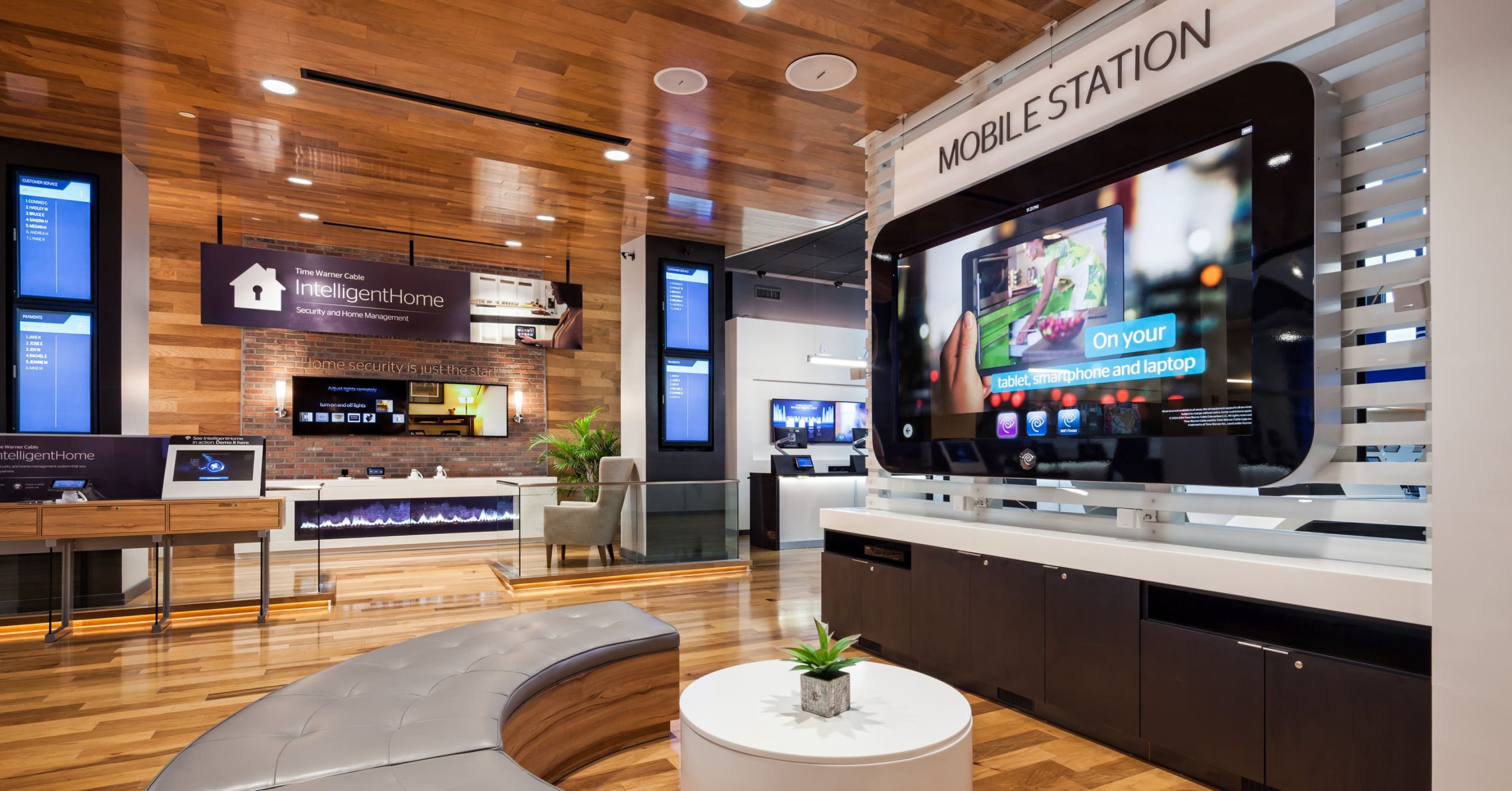 Interior architecture and design services for a 14,000 SF Time Warner Cable Flagship Experience Store located in a historic building in the Flatiron District of New York City. The new store welcomes guests with a modern, open floor plan to serve as a place to learn and try Time Warner Cable’s interactive TV, Internet, Phone and IntelligentHome products and services. The full-service site also provides payment processing, as well as equipment pick-up and return, free WiFi and multiple mobile charging stations throughout the store.
