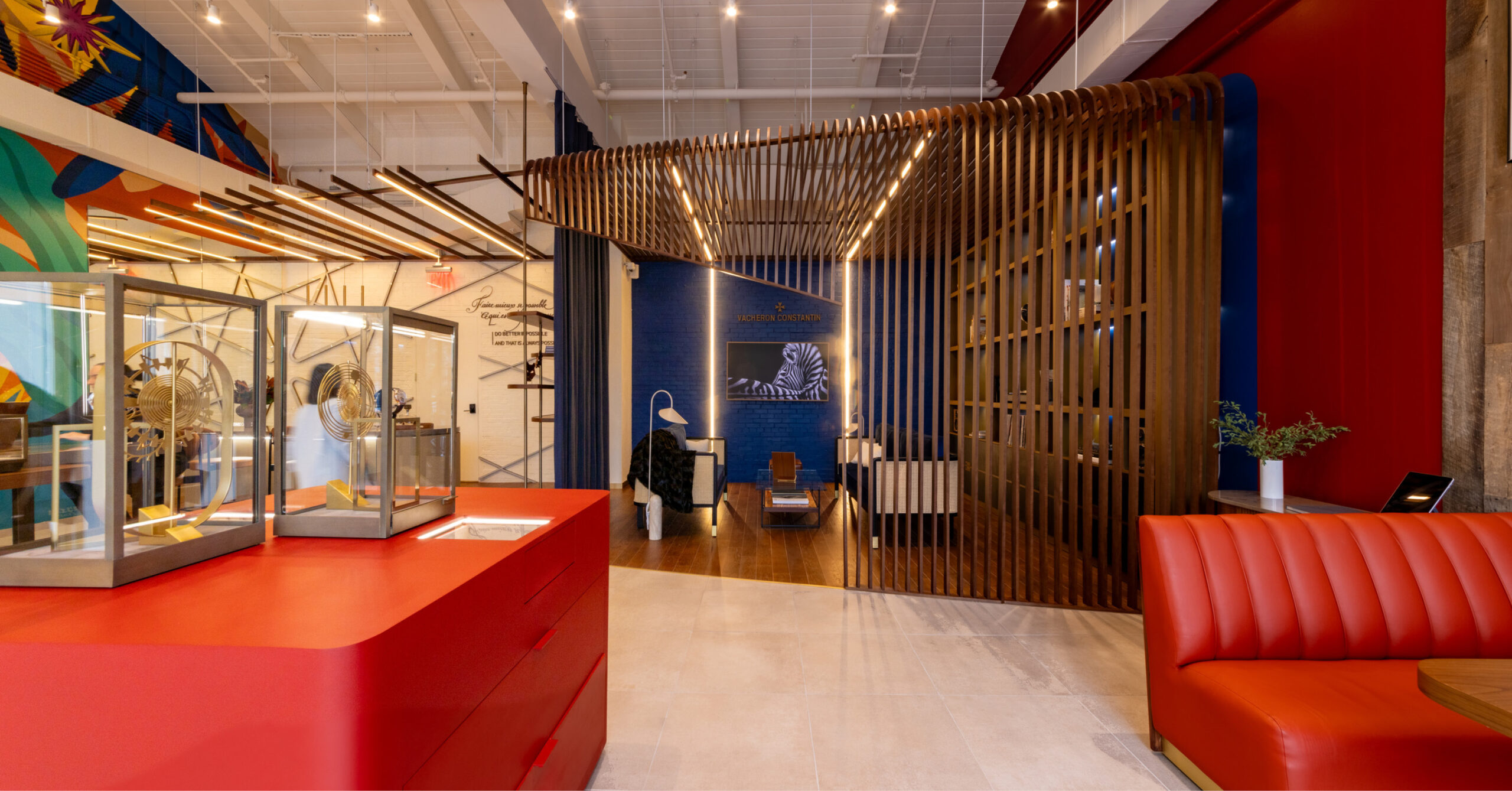 Interior architecture and design services for a new Vacheron Constantin boutique, a Swiss luxury watch brand for men and women. The new boutique offers different seating areas that provide consumers with an experience similar to visiting an exclusive and private social club.