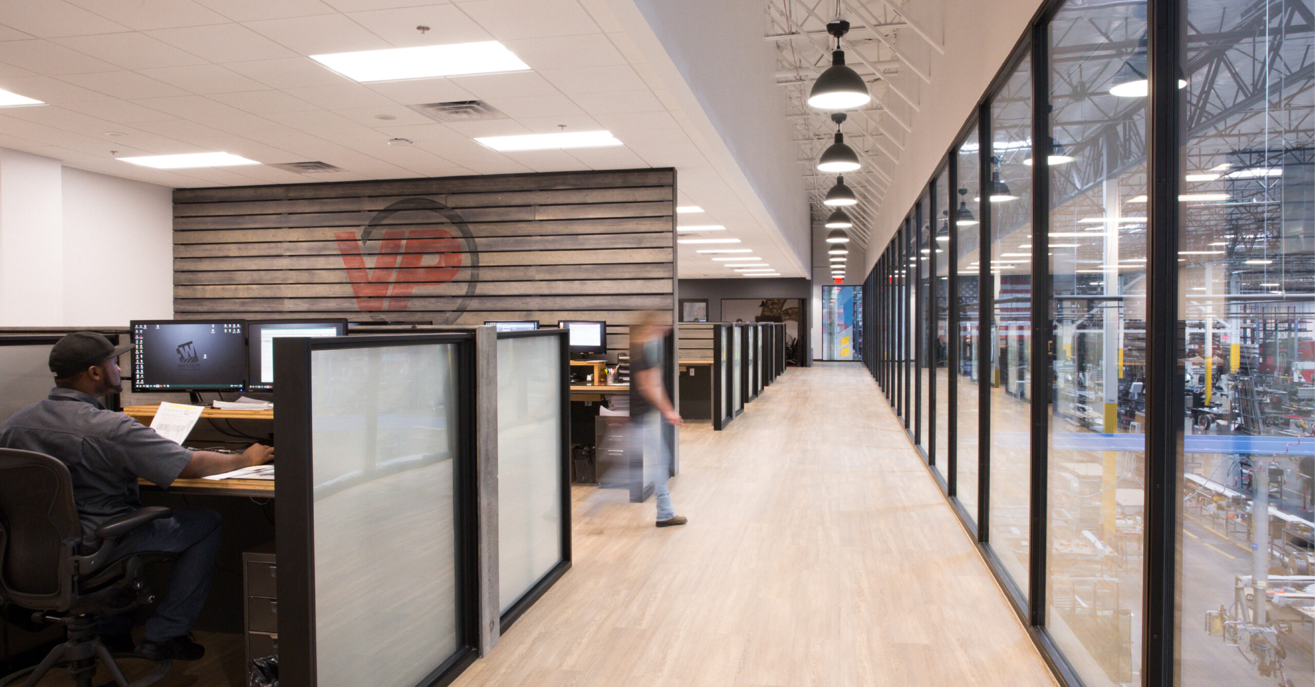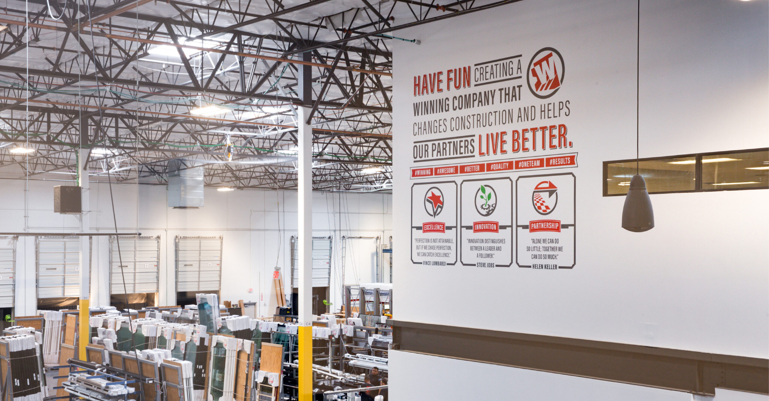 Interior architecture and design services for a new 170,000 SF corporate headquarters and manufacturing facility. The project includes 30,000 SF of office and 140,000 SF of warehouse and manufacturing space. The office areas are designed to reflect the company culture and double as a showroom where customers can experience the company’s vast array of luxury door systems and windows in real-life settings. To maximize productivity, an expanded manufacturing area features state of the art CNCs and saws, additional loading docks, and an updated cooling system.