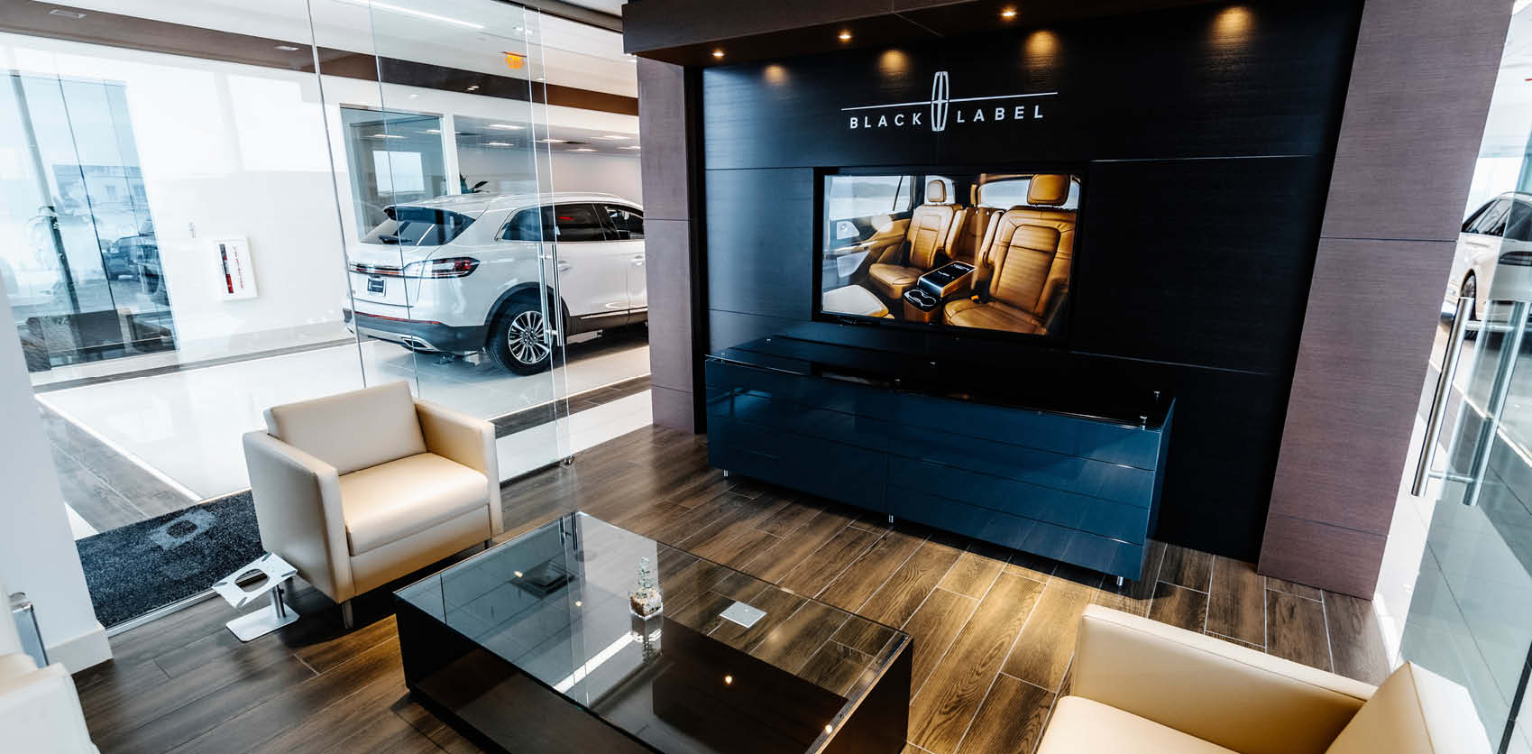 Architecture and interior design services for a new, full-service 16,900 SF Lincoln car dealership, showroom and service center in Barrington, IL. The ground-up project revitalized the Lincoln dealership after the owners elected to separate their Lincoln and Ford dealerships, allowing for an ultra-curated experience for Lincoln buyers. The facility is spacious, with comfortable large and small client interaction areas that transform purchasing into a luxury experience. This project includes elevated customer zones, and a car delivery room with a three-bay, pull-through service reception space. Unlike the overwhelming atmosphere of traditional dealerships, this space welcomes customers into a serene, zen environment, encouraging relaxation and comfort to elevate the buying experience.