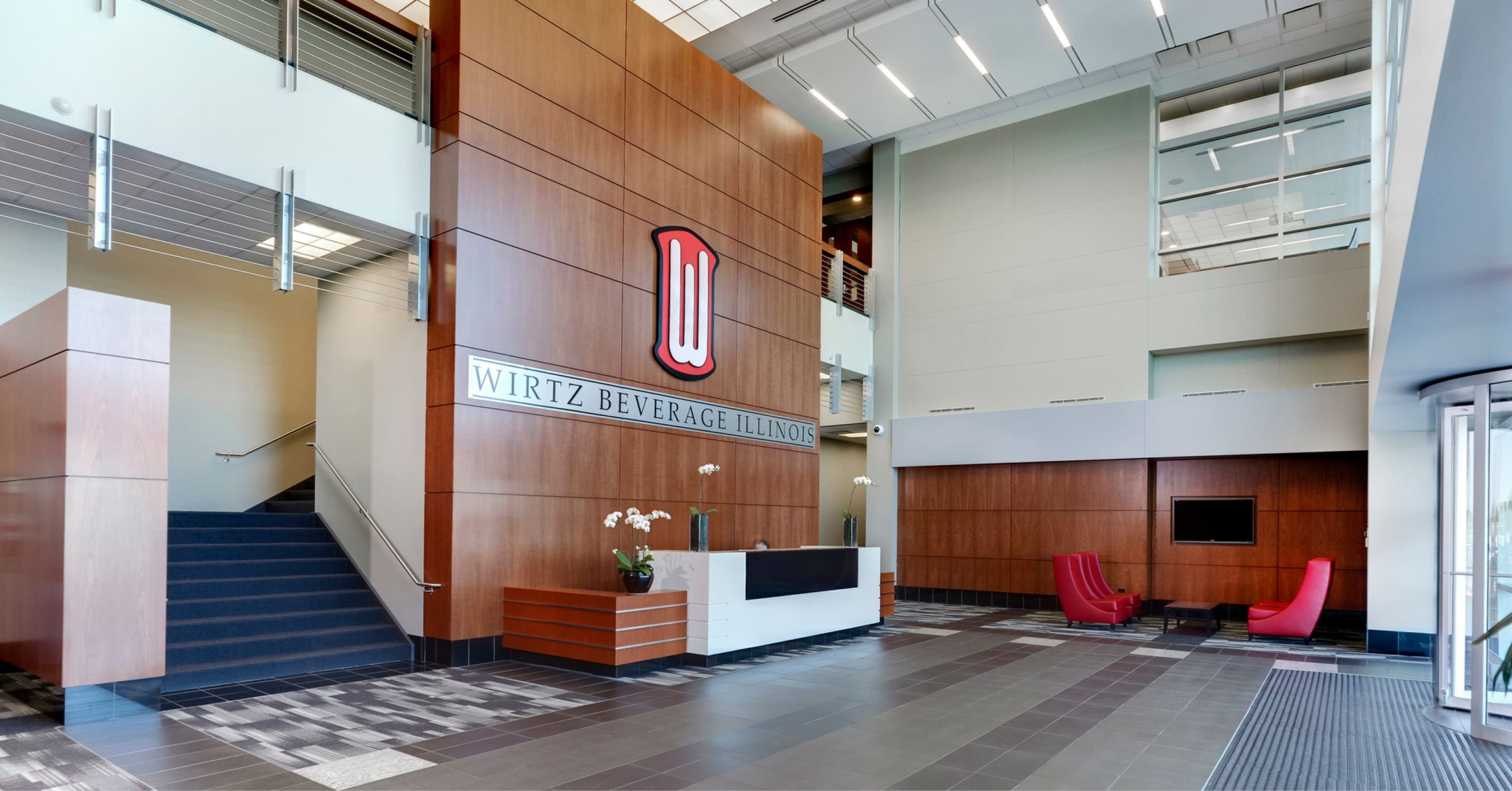 Architectural and interior design services for a 600,000 SF build-to-suit corporate headquarters and beverage distribution facility with 25,000 SF of climate-controlled room with refrigeration, and 100,000 SF of office space. Half of the warehouse is dedicated to an automated storage and retrieval system (ASRS), 25,000 SF of cooler space and features a 40’ clear height with custom build-to-suit bay spacing. The site also includes 750 parking stalls for their entire sales force and accommodations for their complete trucking operation from shipping and receiving to parking, maintenance, and washing. The class A office space consists of a full-service bar and demonstration kitchen where professional mixologists and chefs can perform training sessions and host events.