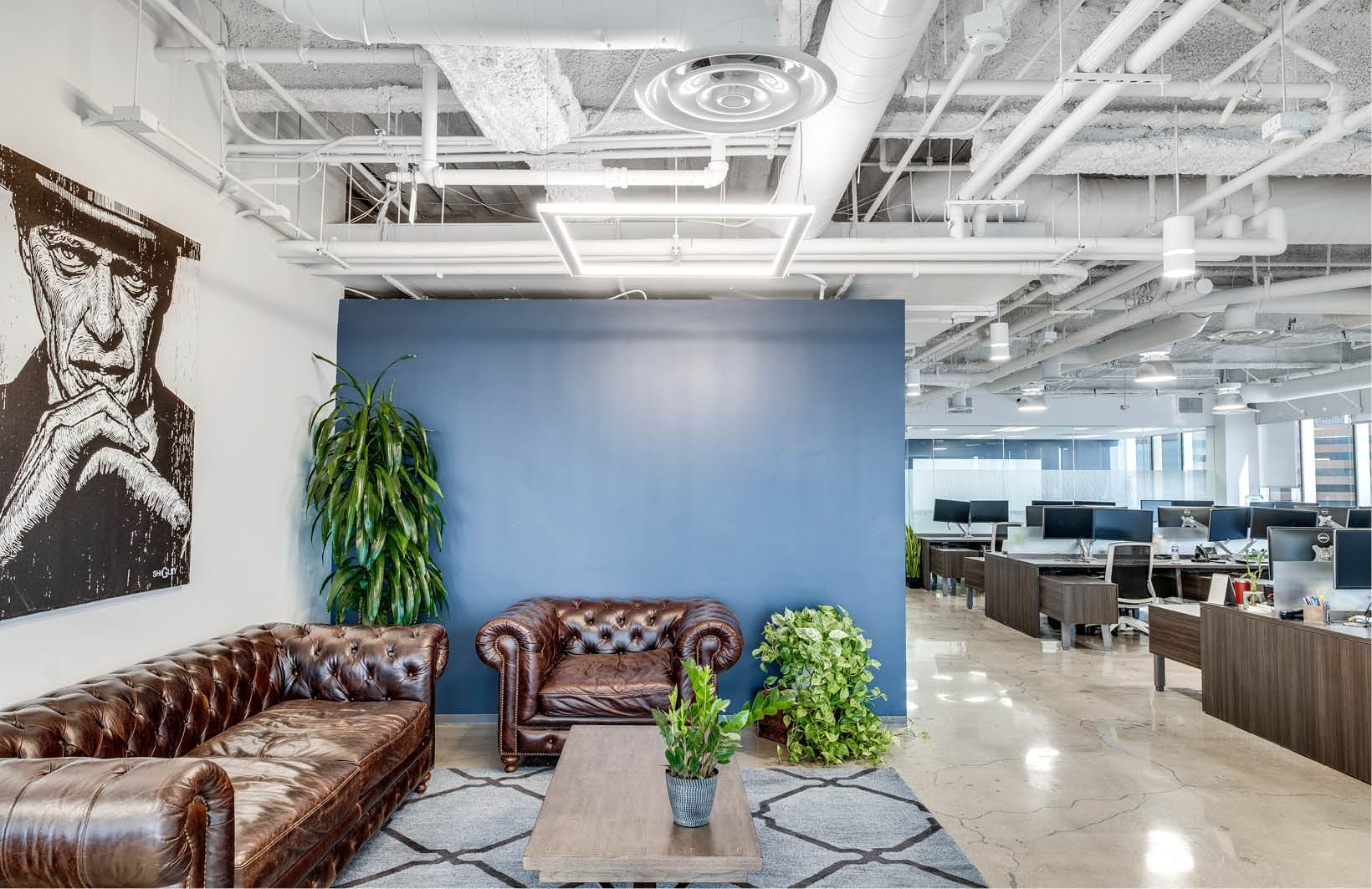 Interior architecture and design service for a 8,422 SF creative office tenant improvement. The scope included open office, meeting rooms, and featured open to deck ceilings and polished concrete floors throughout.