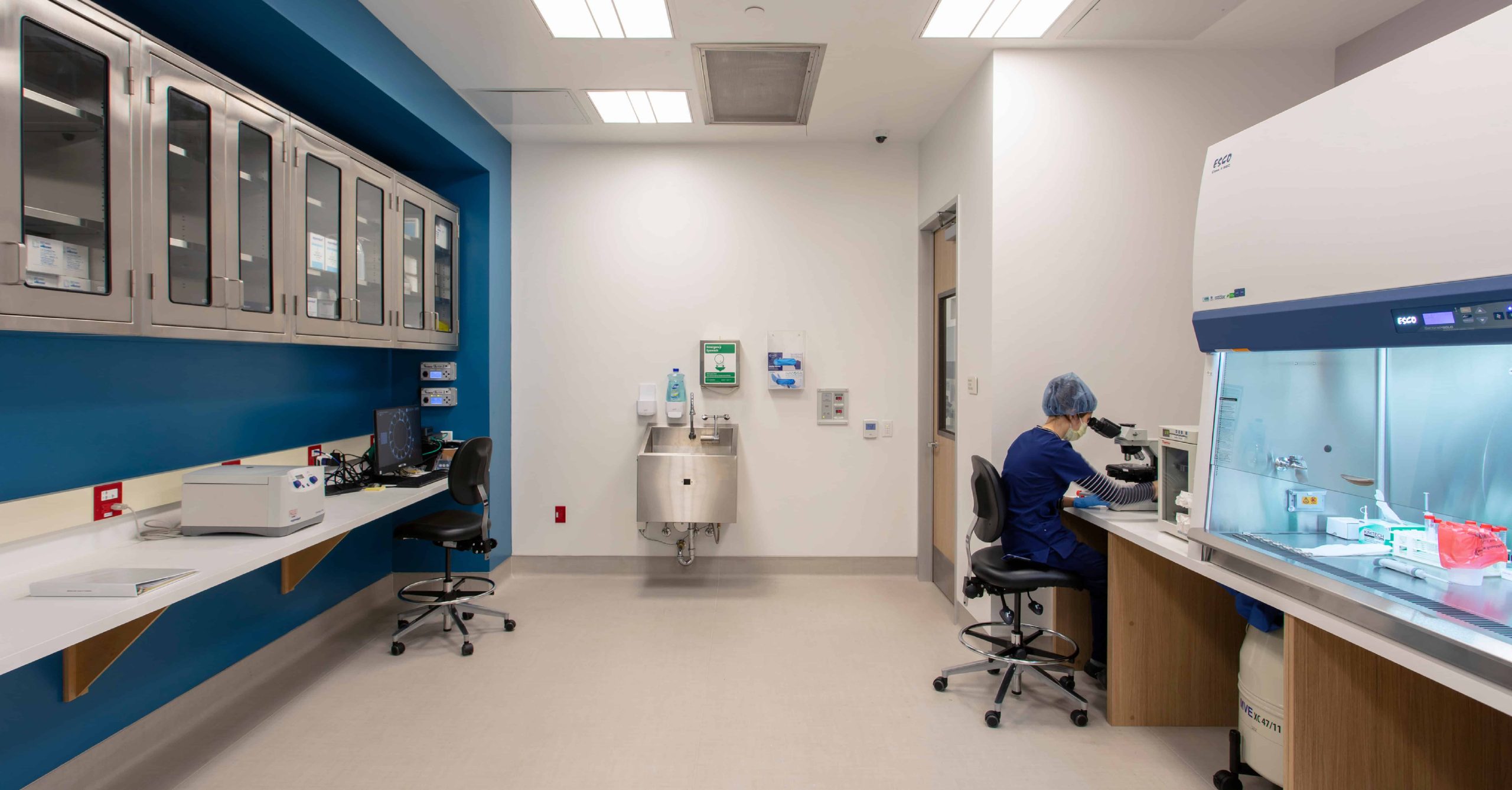 Architecture and interior design services for a 7,355 SF tenant improvement for a new I2.1 Occupancy IVF Lab within a B Occupancy building. Suite includes two Operating Rooms, six Pre and Post Op Bay, Transfer Rooms, Sterile Processing Room all with upgraded finishes and selected finishes are in compliance with strict requirements that produce no VOCs.
