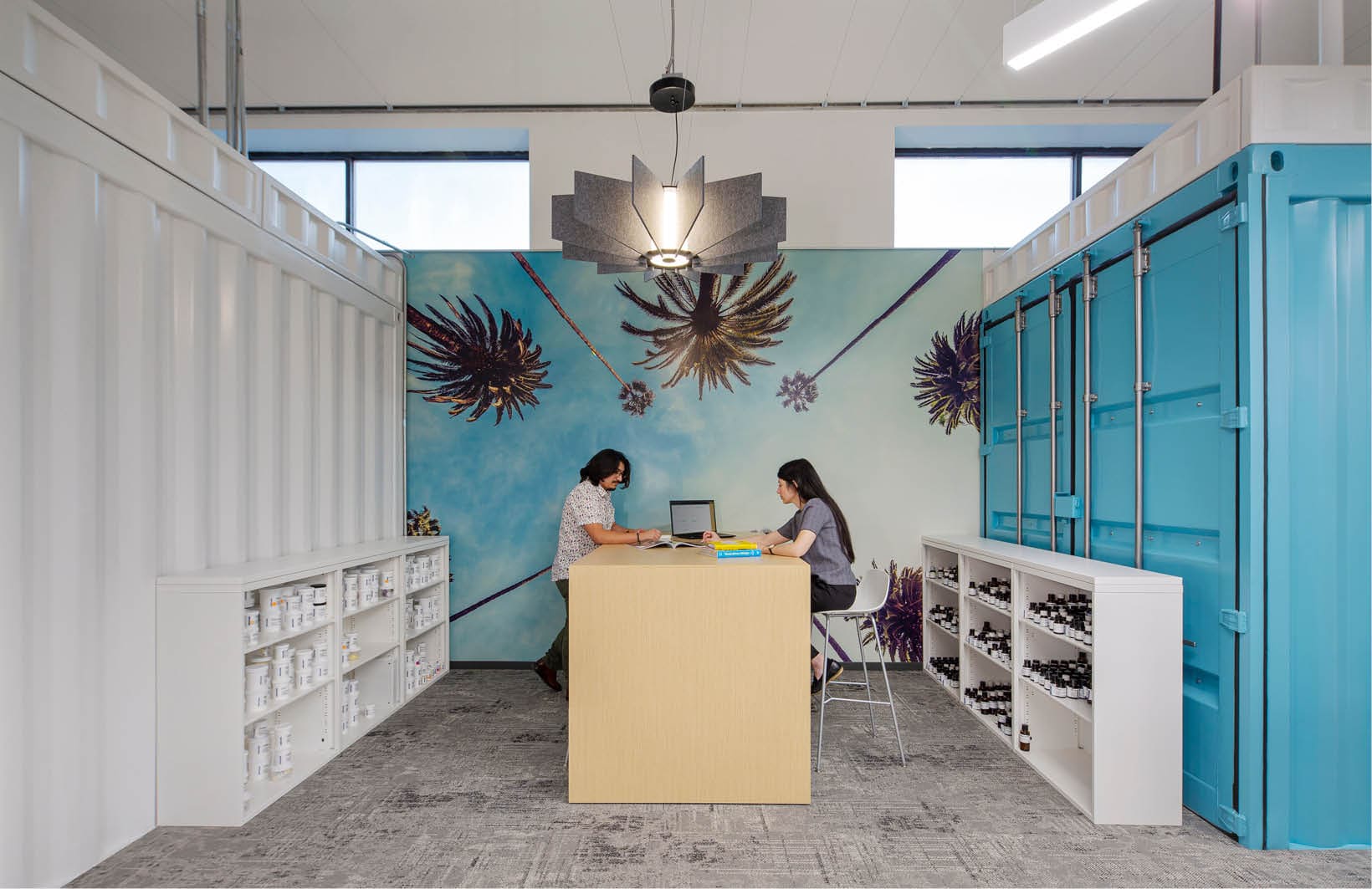 Interior architecture and design services for a 14,000 SF office and research and development laboratory. The design incorporates pre-fabricated shipping containers.