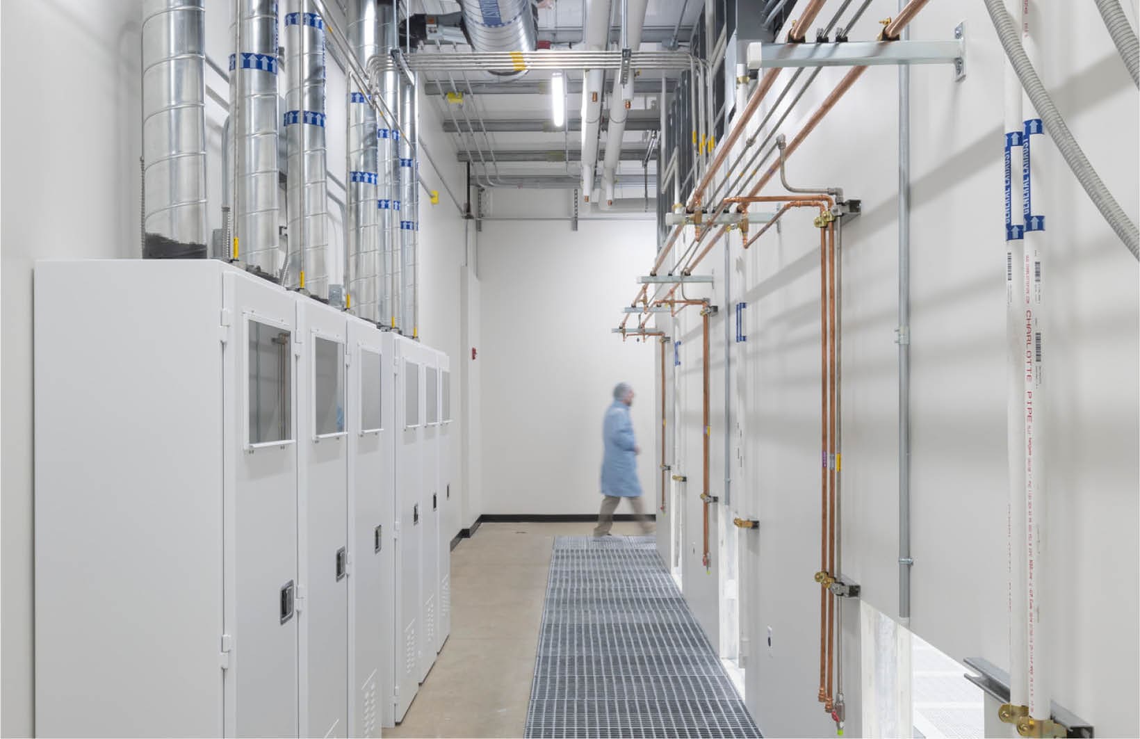 Interior architecture and design services for a level 10 Cleanroom and other various renovations in multiple buildings. The cleanroom includes a new raised floor system and air handling system with 180 fan filter units.