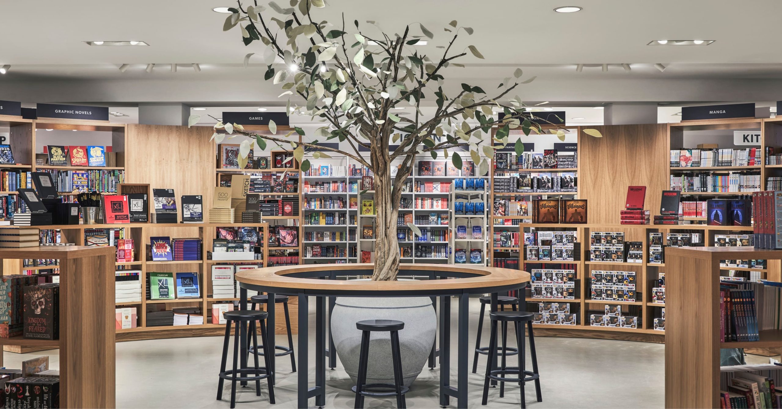 Architectural and interior design services for a 18,000 SF new retail store location inside the Rideau Center mall in Ottawa. The 2-storey retail space contains an open floor plan to display merchandise with enclosed spaces for a staff room, manager’s offer, BOH stockroom and BOH storage. A clean neutral colour palette was used to allow merchandise and light fixtures to shine. A featured children’s area was designed in a bold dark blue to create delineation between spaces. A new facade with black MDF panelling was added to the entrance on both levels of the mall to welcome customers.