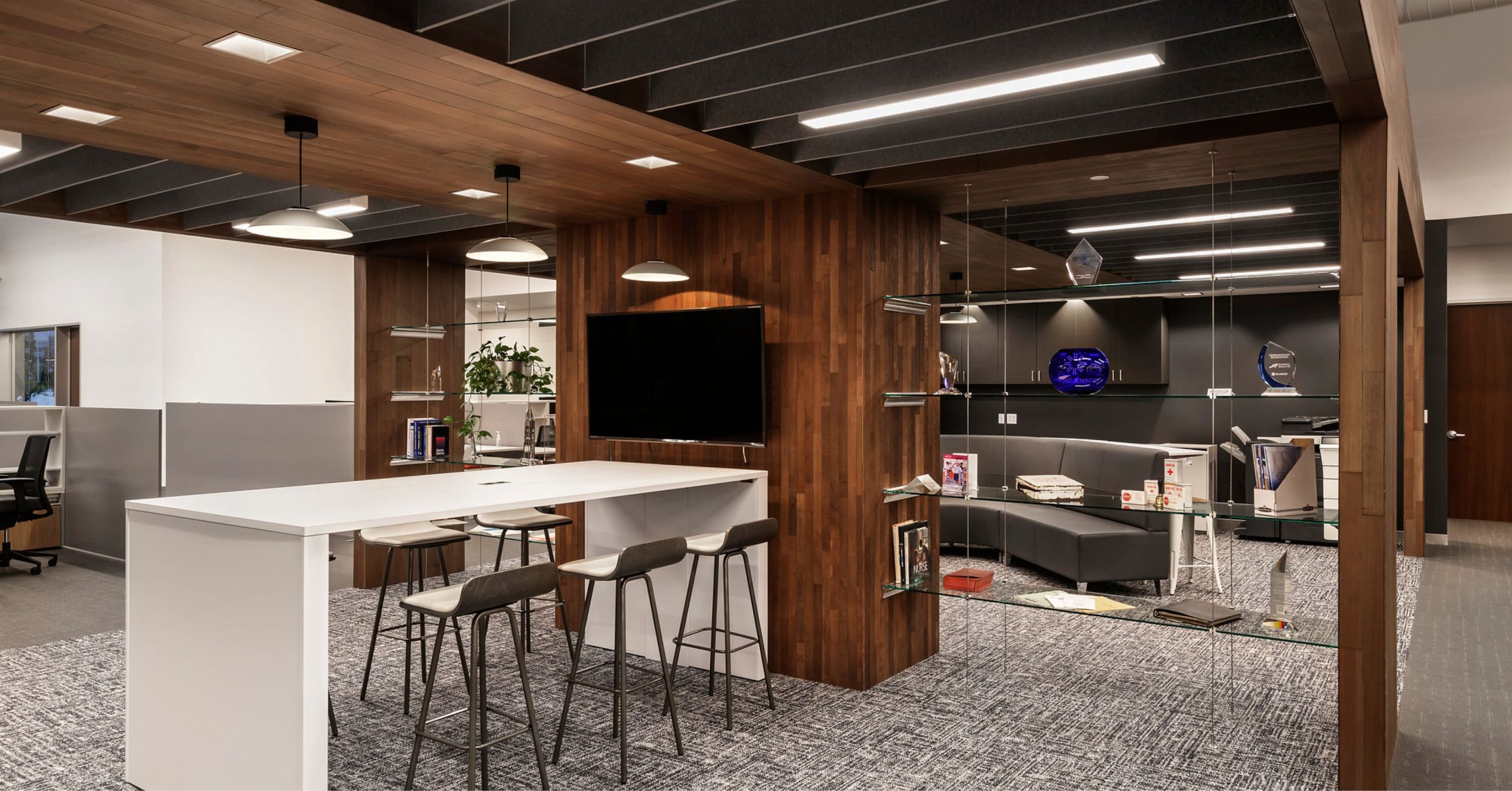Architecture and interior design services for a 125,000 SF industrial build-to-suit. The project includes approximately 24,000 SF of office space including collaborative hubs, quiet “library” zones and a 2-story Town Hall-style cafe for the enjoyment of both the office and warehouse staff. The adjacent community patio/fire pit serves as an extension of the Town Hall, and an alternate work environment for all.