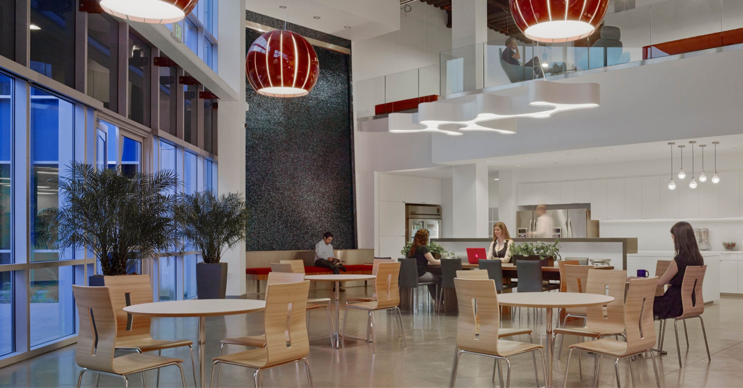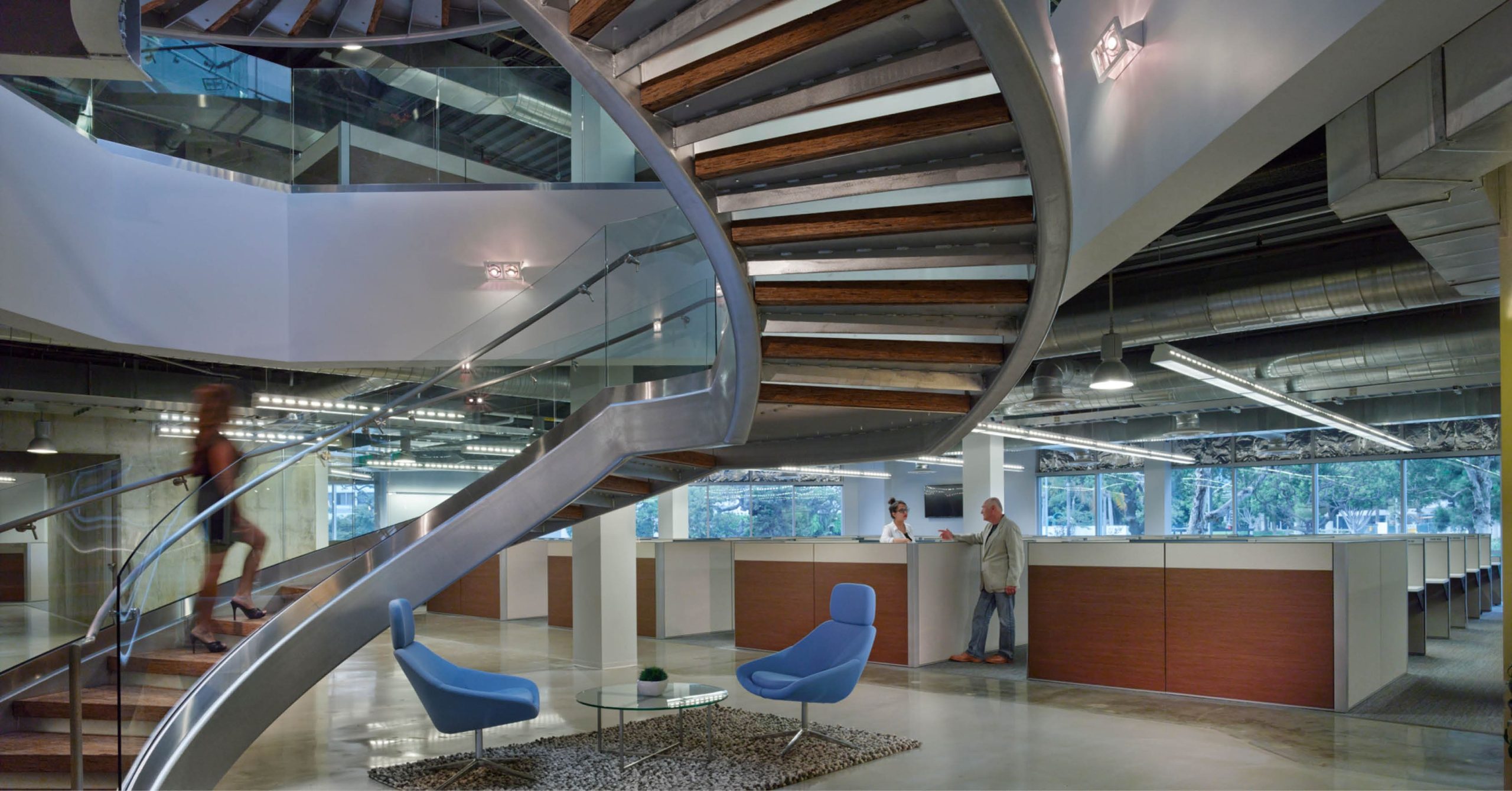 The two buildings are connected with a new two-story 13,000 SF high end lobby. The new 41,000 SF of office includes conference rooms, a cafeteria, lounge area and other employee amenities, as well as an 8,000 SF call center on the first floor. The project also includes a rooftop patio and a full exterior remodel.