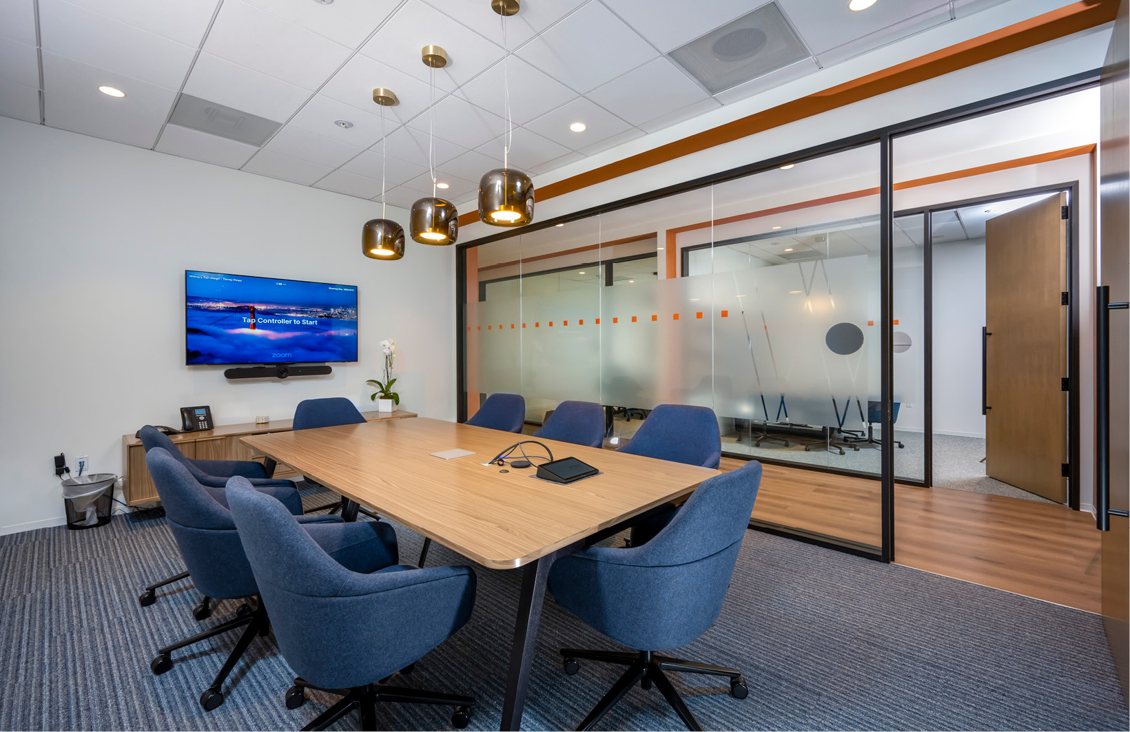 Interior architecture and design services for a 13,500 SF law office tenant improvement at the One Paseo office campus for Withersworldwide. Withersworldwide emphasized the importance of coming back to the workplace post-Covid for their employees and clients and worked closely with Ware Malcomb to curate this hybrid work space. The office space is split in half, for client facing work and internal employee work. This includes shared workstations, private offices, conference rooms and access to all the One Paseo exterior amenities.